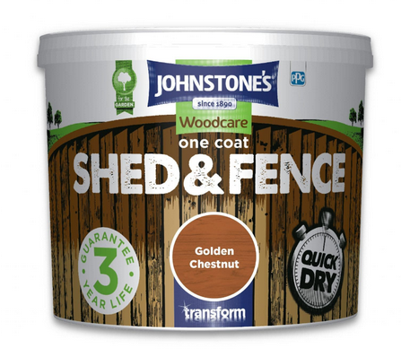 Johnstone’s One Coat Shed & Fence has been specially formulated to provide long lasting colour and protection to all rough sawn timber, such as sheds, fences and trellis’. It is water repelling and protects wood from the sun’s ultra violet rays whilst being harmless to plants and animals when dry.