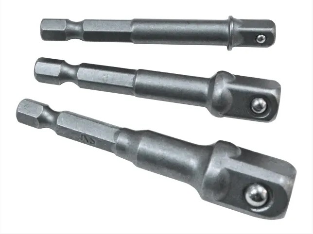 The Faithfull set of 3 Hex To Square Drive Adaptors converts any 1/4in Hex Drive or Drill Chuck to accommodate 1/4, 3/8, or 1/2inch drive sockets.