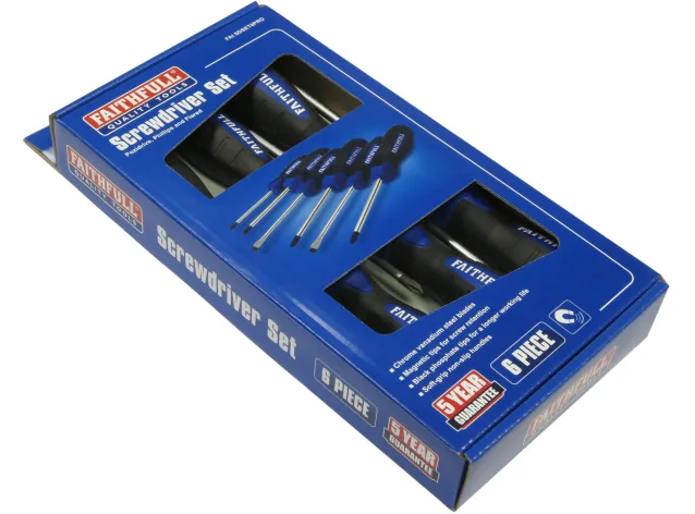 This professional screwdriver set includes six of the most popular selling screwdrivers in the UK. These professional quality screwdrivers are manufactured using correctly hardened and tempered Chrome Vanadium steel blades to provide a long working life. Black phosphate tips provide a long working life and are magnetised for screw retention.
