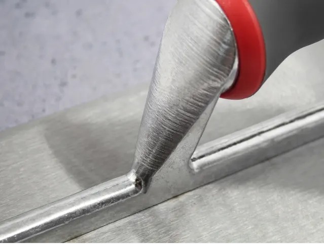 Faithfull edging trowels are commonly use to apply a rounded finished edge to concrete and render. The carbon steel blade with one long curved edge is fitted with a full sized soft grip handle for user comfort.