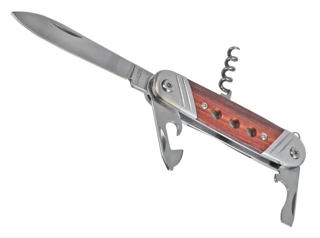 The Faithfull 4-in-1 Multi Blade Knife features a high-quality, 57mm stainless steel main blade. Additionally it features a can/bottle opener, 6mm flat driver, wire stripper and a corkscrew.