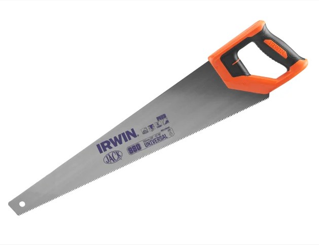 The IRWIN Jack Universal 880 Triple Ground Hardpoint Saw is fitted with a high-quality C75 steel blade and features a unique Triple Ground tooth design offering up to 25% faster-cutting performance than traditional double ground saws. The blade is treated with a water-based lacquer providing 4X the added protection than conventional anti-rust agents.