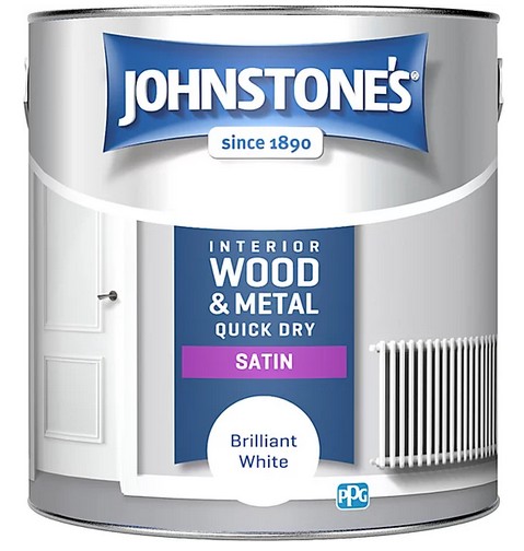 Johnstone’s Quick Dry Satin provides a contemporary, mid sheen finish for interior wood and metal including skirting boards, doors, radiators and staircases The water based, low odour formulation is self-undercoating, non-yellowing and quick drying.