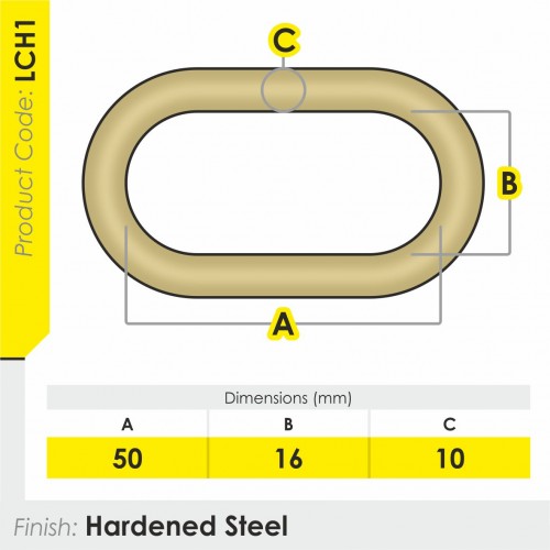 - Chain is manufactured from 10mm thick hardened steel square links which is finished with a zinc passivated coating which protects the chain against corrosion.