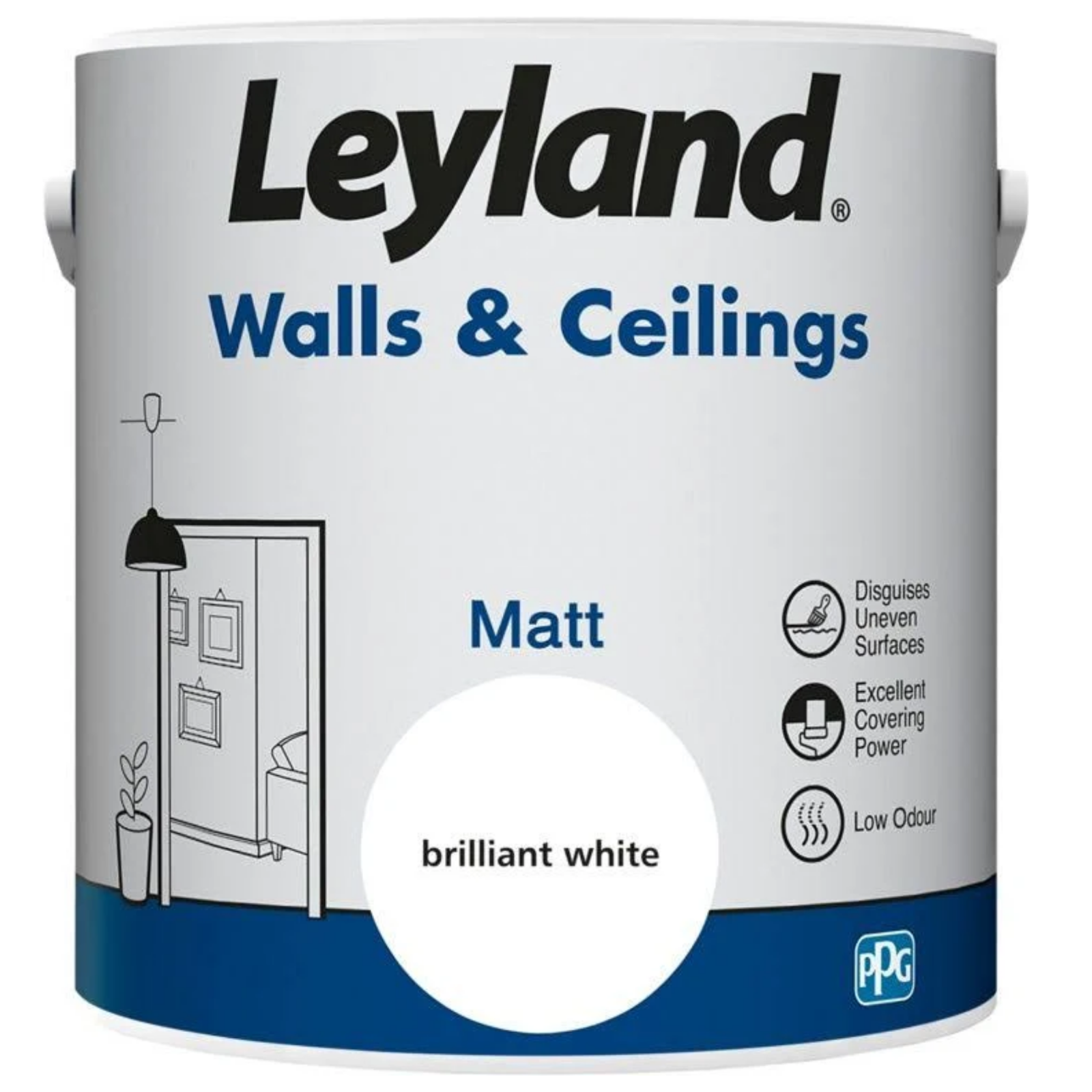 Leyland Walls & Ceilings Matt is a low odour paint, for use on interior walls and ceilings. The contemporary matt finish is ideal for helping disguise uneven surfaces. Recoat time is 2 – 4 Hours.