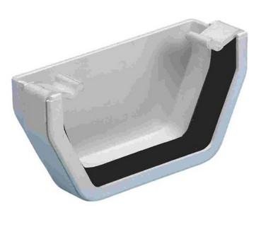 This external stop-end is designed to cap off the end of a 114mm square gutter run, preventing water overflow and ensuring a clean, sealed finish.