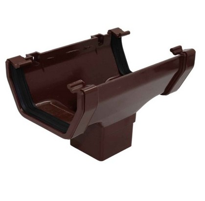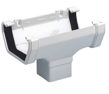 The square running outlet connects a 114mm square gutter to a 65mm square downpipe, providing a direct point for rainwater to exit the gutter system. It fits seamlessly into the centre of a gutter run and ensures efficient flow into the downpipe.
