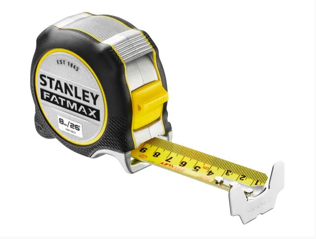 The STANLEY® FATMAX® Tape Measure is engineered for a multitude of professional applications, delivering precise measuring performance. The clearly-defined, double-sided black print on yellow tape enables high visibility and precise vertical and overhead measuring. Equipped with a robust, oversized Beast Hook, users will find this tape achieves an excellent grab on materials of all types.
